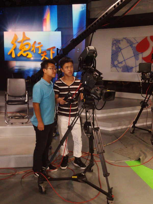 7月19日下午2点,开元暑期社会实践小分队成员来到了《德行天下》栏目的录制现场,开始了本次社会实践活动的最后一个环节。小队成员们在工作人员的指导下参与了节目会场布置工作。通过工作人员专业而细致的讲解,大家了解了演播室的区域划分以及各自的功能、录制现场工作人员的分工机制、相关摄影仪器的使用方法及技巧等。这些在大家平时生活当中很少经历的体验,不仅拓展了同学们的知识面,也同时让大家了解到电视制作人的不易。