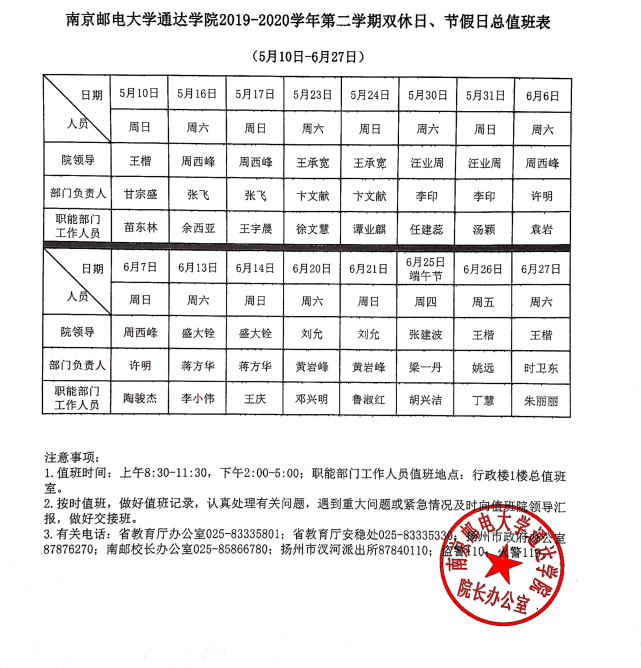 开元集团网站2019-2020学年第二学期双休日、节假日总值班表