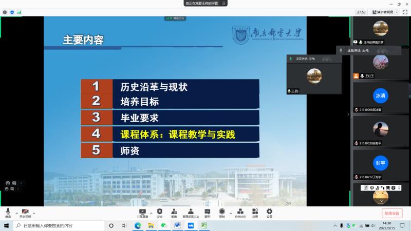 解读会上,两位教授分别从培养目标、毕业需求、主干学科与交叉学科、核心课程、方向及特色、毕业学分及比例要求、课程与毕业要求的对应关系、师资等方面为2021级的新生们做了详细的专业解读,并动员学生从大一开始打好考研的基础,并积极参加各类学科竞赛。会后,老师们对同学们提出的问题进行耐心讲解。