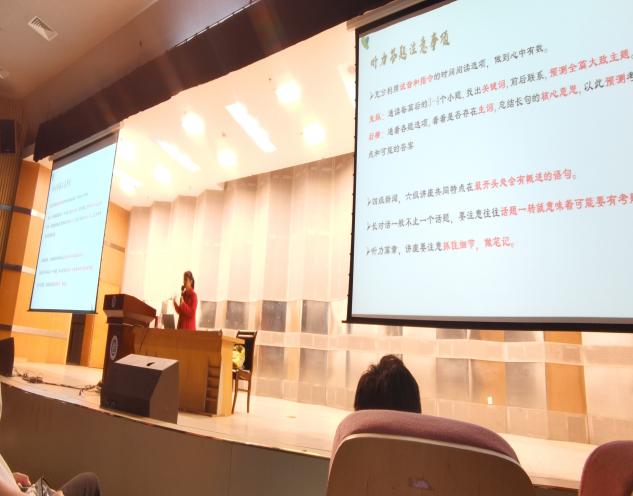 为强化学生英语学习意识、找准学习方法,更好地备战即将到来的英语四六级考试,11月18日晚,由开元基础部外语教研室与英语协会联合主办的英语四六级讲座在行政楼报告厅举行。本次讲座邀请了开元集团网站外国语学院苗天幸老师作为主讲嘉宾。