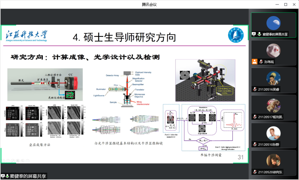 最后,窦建泰老师还就江苏科技大学理学院的研究生专业设置、师资力量、培养方向等情况进行了简单介绍,并欢迎我校同学报考江苏科技大学。整场报告学术性强、内容充实、深入浅出,现场气氛热烈。