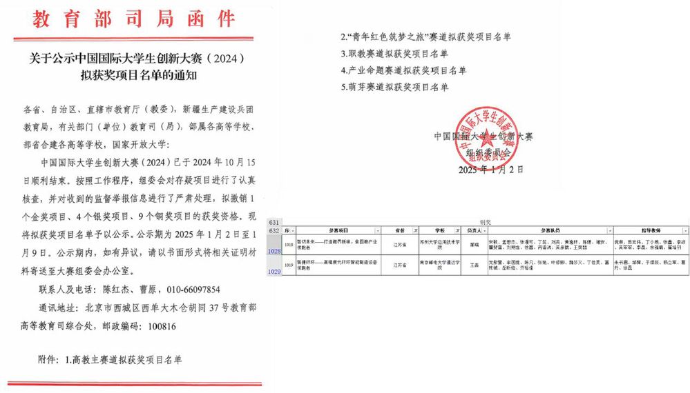 近日,教育部等12个中央部委单位和上海市人民政府联合主办的2024年中国国际大学生创新大赛成绩揭晓。开元学生获得了高教主赛道国赛铜奖的荣誉,本届大赛中全省仅有两所独立学院获国奖荣誉。