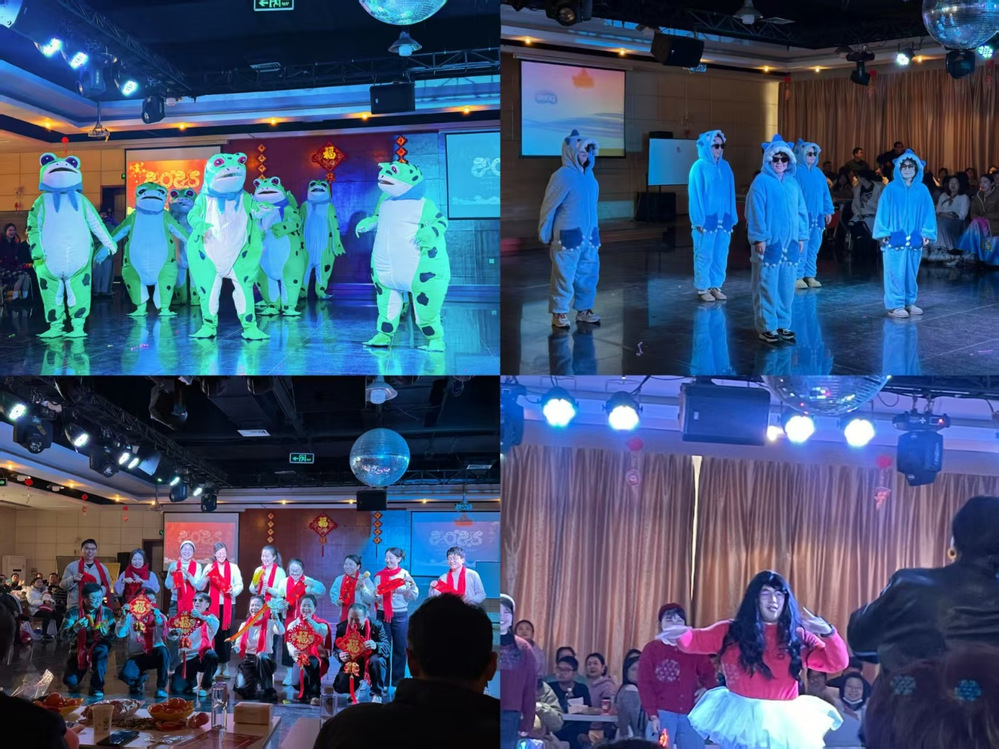 联欢会在活力四射的开场舞《最炫民族风》中拉开序幕,机关工会小组的老师们身着不同民族的服饰载歌载舞,一下子引燃了会场的气氛;图书馆工会小组表演的《开心三句半》用妙语连珠抖落无数欢乐,让大家尽享传统曲艺之妙趣;学工工会小组带来的《学工战线联盟》青春洋溢,活力四射;电气工程学院和电子工程学院工会小组一同表演了歌曲串烧《奔跑吧,朝着最初的梦想》,唱出了不畏艰难、追逐梦想的壮志豪情,展现了教职工们坚韧不拔、勇于拼搏的精神风貌;产学研合作与实验室建设处工会小组将快乐加倍,表演了两支歌舞《APT》《青蛙护花使者》,萌态可掬的表演赢得了现场观众的阵阵掌声;后勤处工会小组表演的《天地龙鳞》以激昂旋律鼓舞大家携手共进,共创美好未来;通信工程学院工会小组的《欢歌笑舞•热辣滚烫》将热辣滚烫传递,再一次燃爆全场;计算机工程学院工会小组的歌曲《上春山》以温柔治愈的歌声慰藉心灵,让大家在忙碌与压力中找到片刻宁静;商学院工会小组表演的《商院永远OK》以灵动多姿的舞步为大家呈现视觉盛宴;教务处工会小组表演的《明天会更好》用温暖歌声表达了对未来的美好期许,也传达了老师们对2025年学院教育事业高质量发展的美好憧憬与期待。