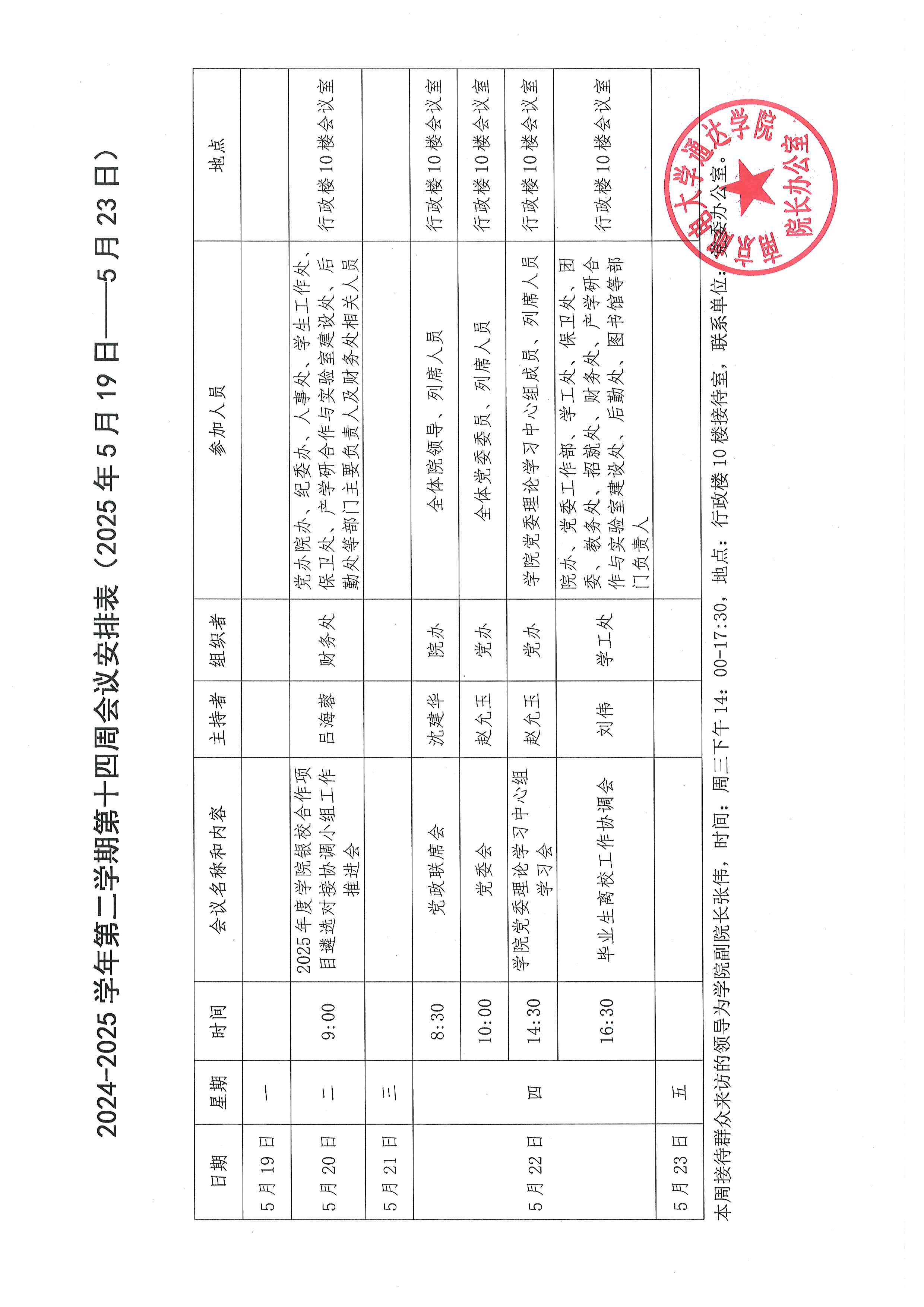 2024-2025学年第二学期第十四周会议安排表