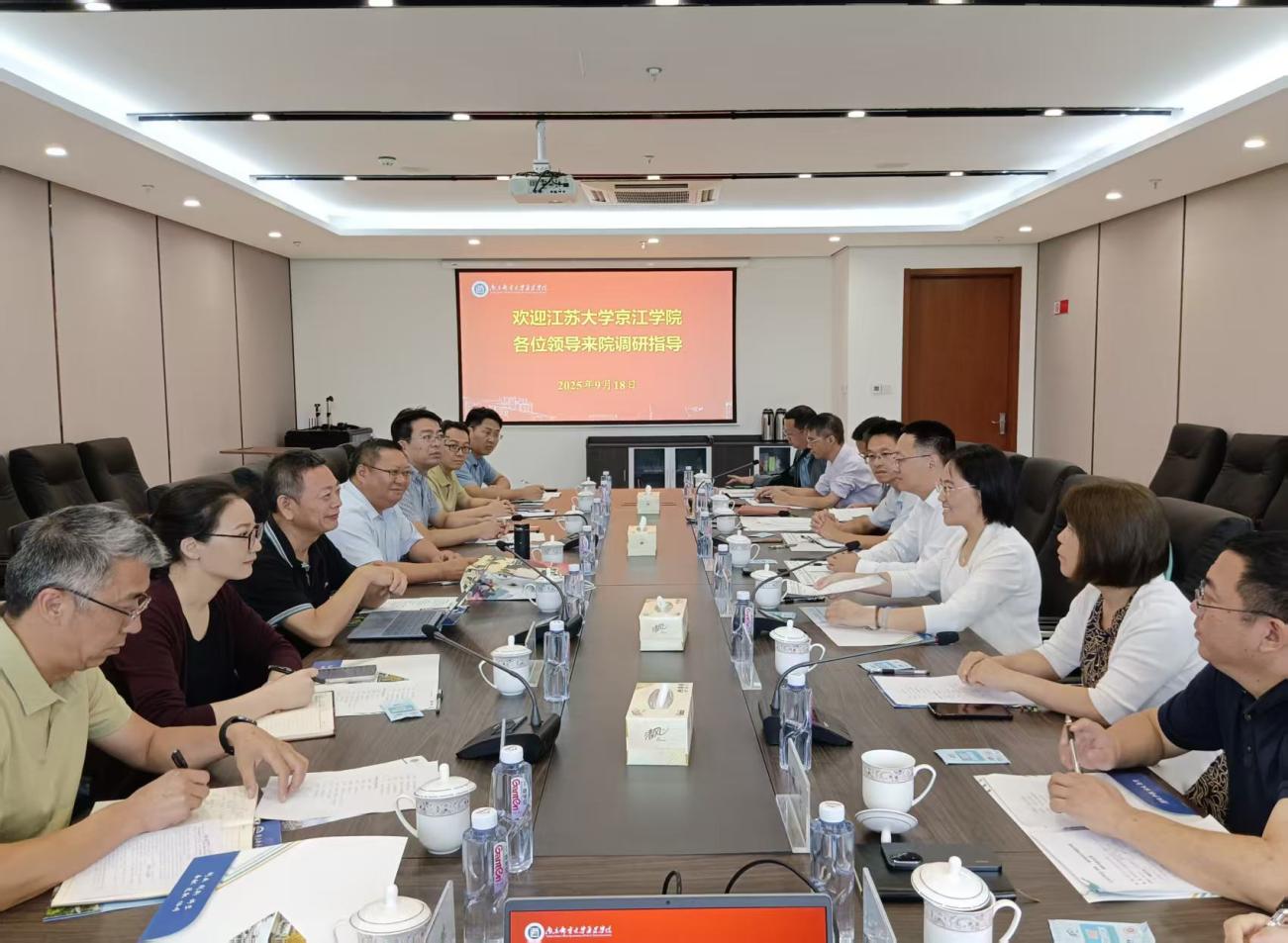 9月18日上午,江苏大学京江学院党委书记崔金贵,院长杜道林,党委副书记、纪委书记蒋豪等一行来开元调研交流。开元党委书记赵允玉、院长沈建华、常务副院长杨立军、纪委书记宋健康等院领导及相关职能部门负责人参加了交流活动。会议由党委书记赵允玉主持。