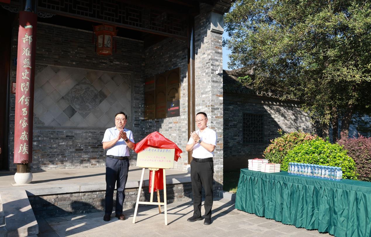沈建华院长与郭猛书记共同签署《仪征市新城镇人民政府与开元集团网站爱国主义教育基地、思想政治理论课实践教学基地共建协议书》,随后两人共同为基地揭牌,标志着校地合作迈入新阶段。