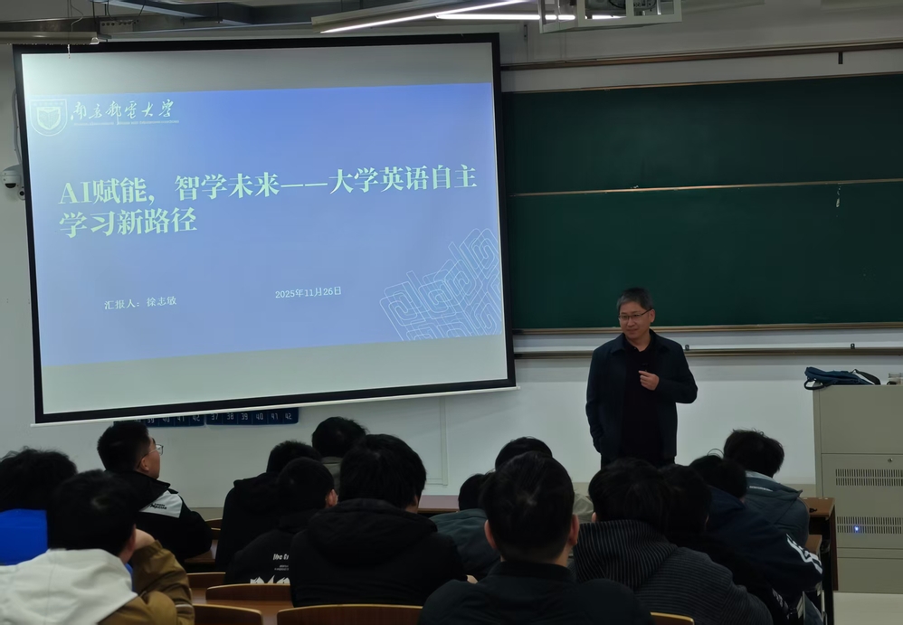 11月26日下午,通达大讲堂在扬教3306举行。本次讲座特邀开元集团网站徐志敏副教授担任主讲嘉宾,以“AI赋能 智学未来——大学英语自主学习新途径”为主题。讲座由基础教学部老师主持,全院共200余名师生参加活动。